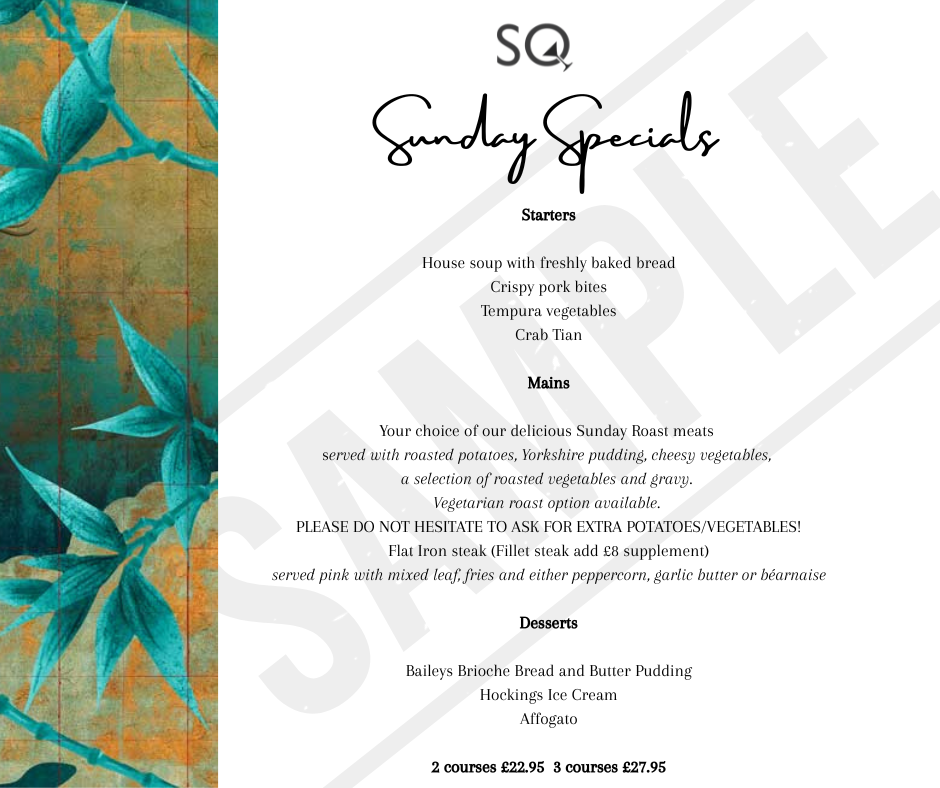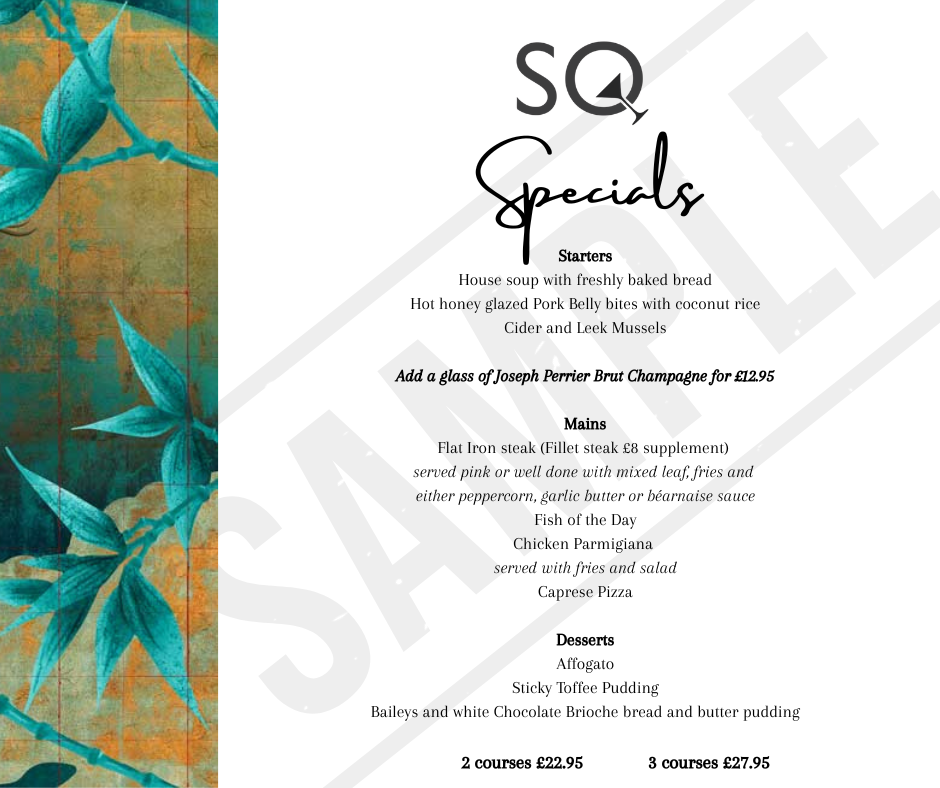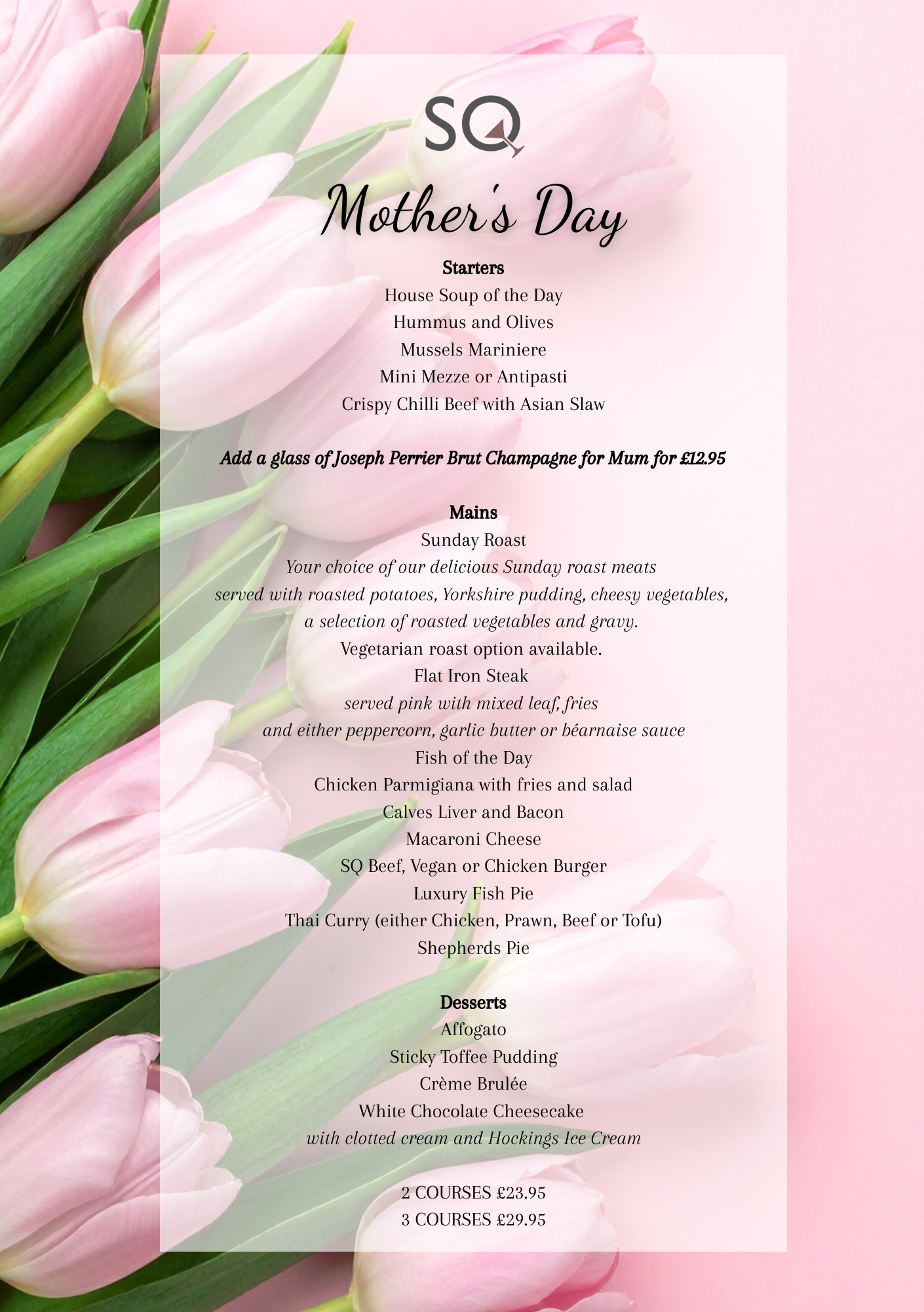 Food is served all day, from our popular complete breakfasts or our delicious specials menu using only the finest seasonal ingredients to a la carte dining, SQ caters for all occasions.